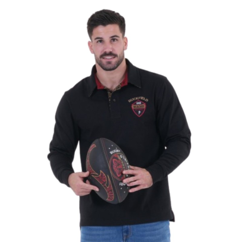 Le **Polo Ruckfield à manches longues Maori Rugby noir** est un polo en coton au design inspiré du rugby et des motifs maoris. Il combine confort et style avec sa couleur noire élégante et ses détails distinctifs.